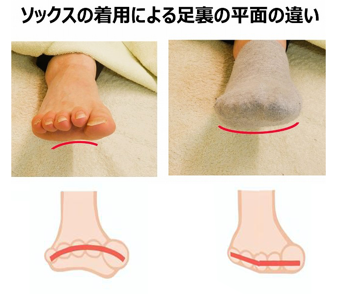 靴下を履くと、それだけでアーチが落ちる場合があります。