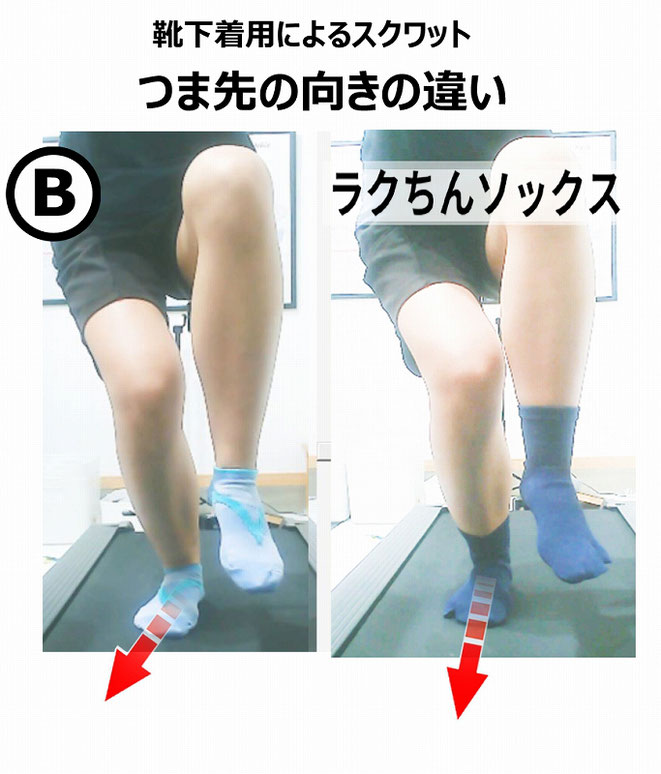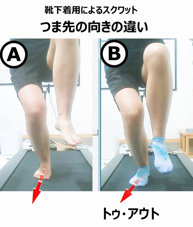 靴下の違い、ただこれだけで膝は捻れて動きます。