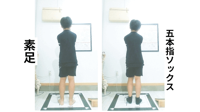 素足で走ると膝を捻らずに走りますが、使用していた五本指ソックスを着用して走ると膝を捻じる動きを繰り返しました。