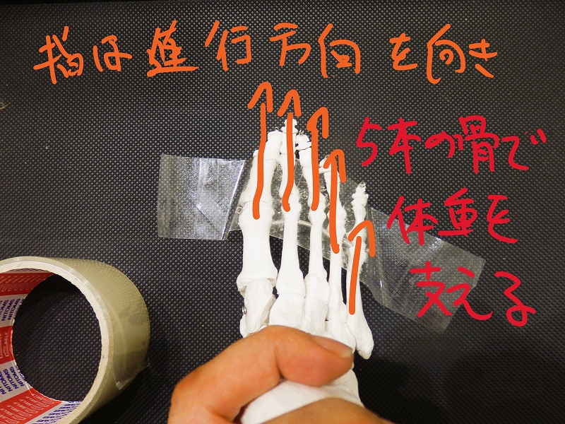 このとき、親指から小指までの5本の骨が協調して体重を支え、