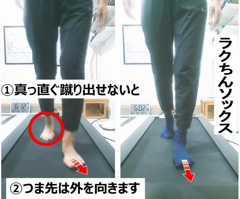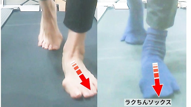 五本指ソックスを履くと、アーチが崩れ、つま先が外を向いてしまいました。