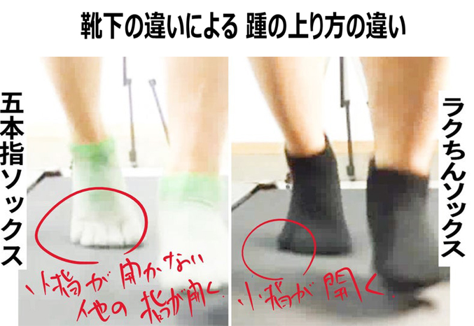 靴下の違いだけで、踵の上がる方向が大きく変わってしまうことは、意外と知られていません。